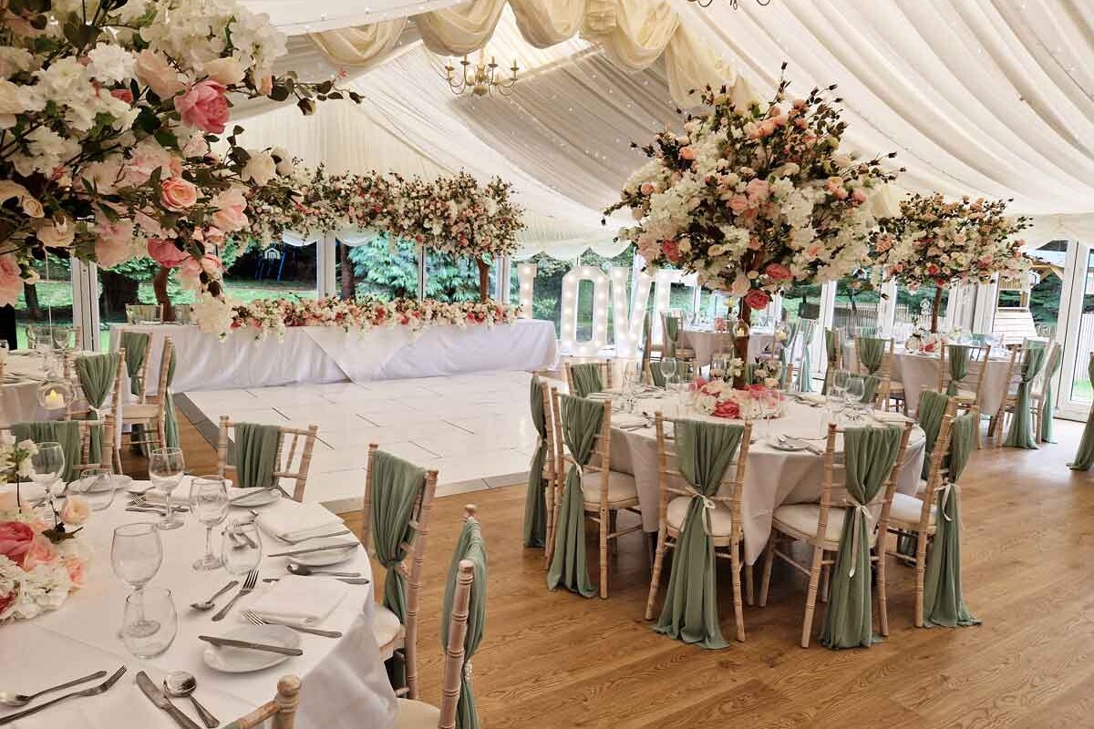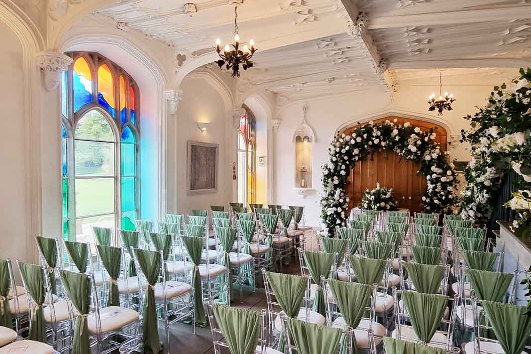 Say ‘I do’ in our exquisite Garden Room, featuring a sweeping staircase and beautiful stained-glass windows that infuse the room with natural light. We also host ceremonies in our beautiful Woodland suite overlooking the riverbed and cedar tree. For larger ceremonies, opt for our starlight marquee. Alternatively, marry at one of the local churches, before travelling over to the Abbey to celebrate with family and friends. There is also the option of saying your vowels under our picturesque cedar tree.